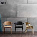 「N01」は、昨年発売されたばかりで、ご存知の方もまだ少ないかもしれません。フリッツ・ハンセンでは珍しいアーム付きのチェアです。アルネヤコブセンがデザインしたグランプリチェア以来なんと61年ぶりに発表されたすべて木製の椅子なんです。