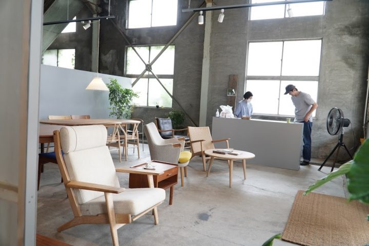 そして一番の魅力は“広さ”。約250㎡あり、2畳だった作業場が約80倍の広さになりました。そこで家具修理の仕事だけでなく、妻とも結婚前からよく話をし、「夢」でもあった北欧ヴィンテージ家具のお店をやろうと決断しました。