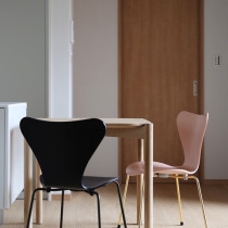 1脚置いているだけでも絵になり、4脚を同じ色で揃えてもきれいなセブンチェアですが、この機会に自分だけの組み合わせをお楽しみいただければ嬉しいです。