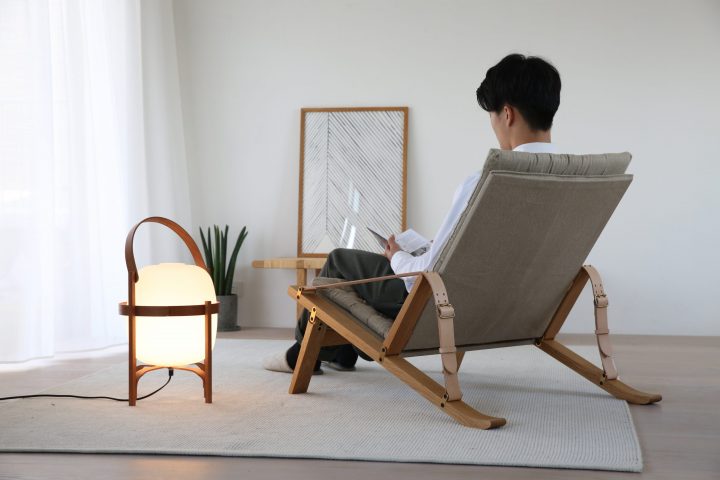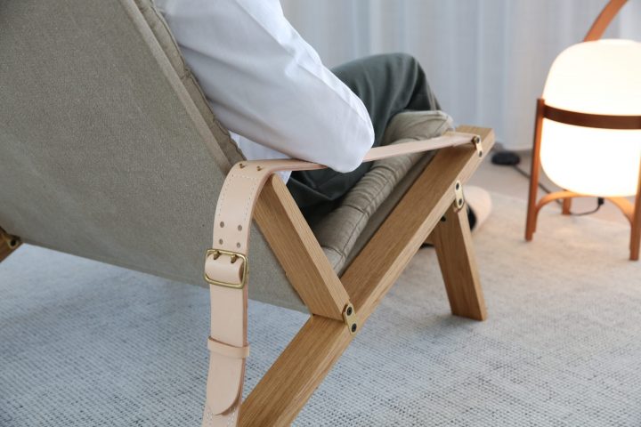 折りたたみができる便利さと、サドルレザーのすっきりとした見た目や、座面の浮遊感により大きさや圧迫感を感じさせないデザインが、和室などにも合わせやすいのではないでしょうか。