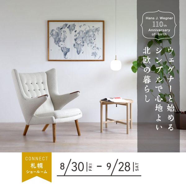 この度、CONNECT札幌ショールームにて開催が決定しました、Hans J. Wegner(ハンス J.ウェグナー)生誕110周年イベント「ウェグナーと始める シンプルで心地よい 北欧の暮らし」(ウェグナー展)。