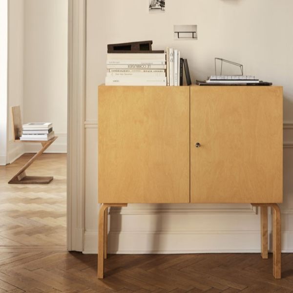 1955年にアルヴァ・アアルトが自邸のためにデザインし、その後もアアルト建築に度々登場した、伝説的なキャビネットが復刻しました。正面から見ると、あたかも壁に溶け込んでいるかのような、ミニマルで美しいデザインが特徴です。アアルトの「建築と家具の統合」という哲学を体現したこのキャビネットは、機能性と美しさを完璧に両立しています。