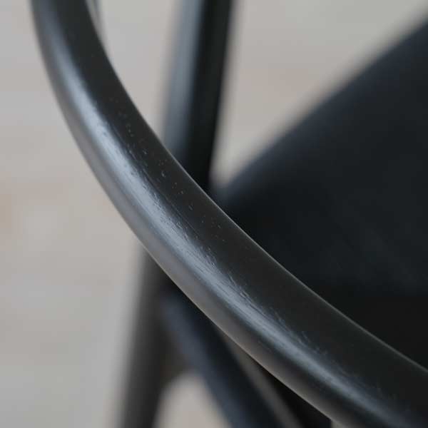 ビーチ材のソフトブラック塗装はマットな質感で、木目が見えない仕上がりです。光の当たり方によってはグレーにも見え、やわらかく落ち着いた風合いが特長です。