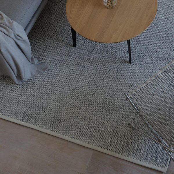 北欧テキスタイルのトップブランド、クヴァドラ社のラグ。 手織りのような温かみのある質感と、モダンな配色が特徴です 。 ラグは床からの冷えを防ぐだけでなく、空間を「ゾーニング(区切る)」役割も果たします。ソファの前に一枚敷くだけで、くつろぎの空間がより心地よく整います。