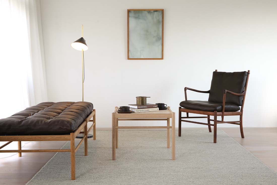 OW449(コロニアルコーヒーテーブル)をデザインしたオーレ・ヴァンシャー(1903-1985)は、「デンマークモダンの父」コーア・クリントに師事し、王立芸術アカデミーやクリントの事務所で学んだ経験が彼のデザイン思想の基盤となりました。彼はまた、単なるデザイナーにとどまらず、世界各地の家具デザインを研究した家具の歴史研究家でもありました。この深い知識と洞察が、彼の作品に普遍的な美しさと歴史的背景をもたらしています。