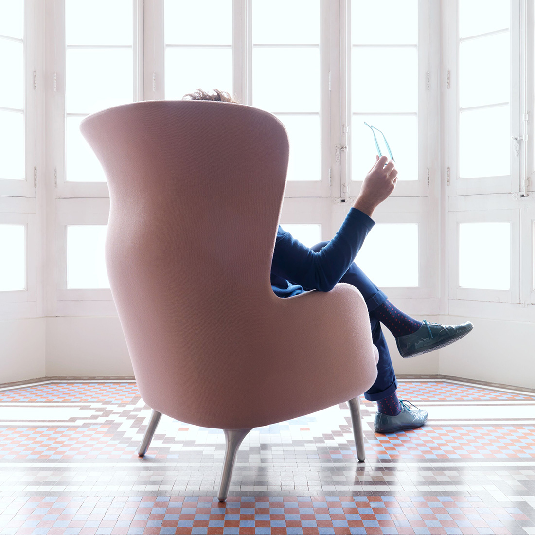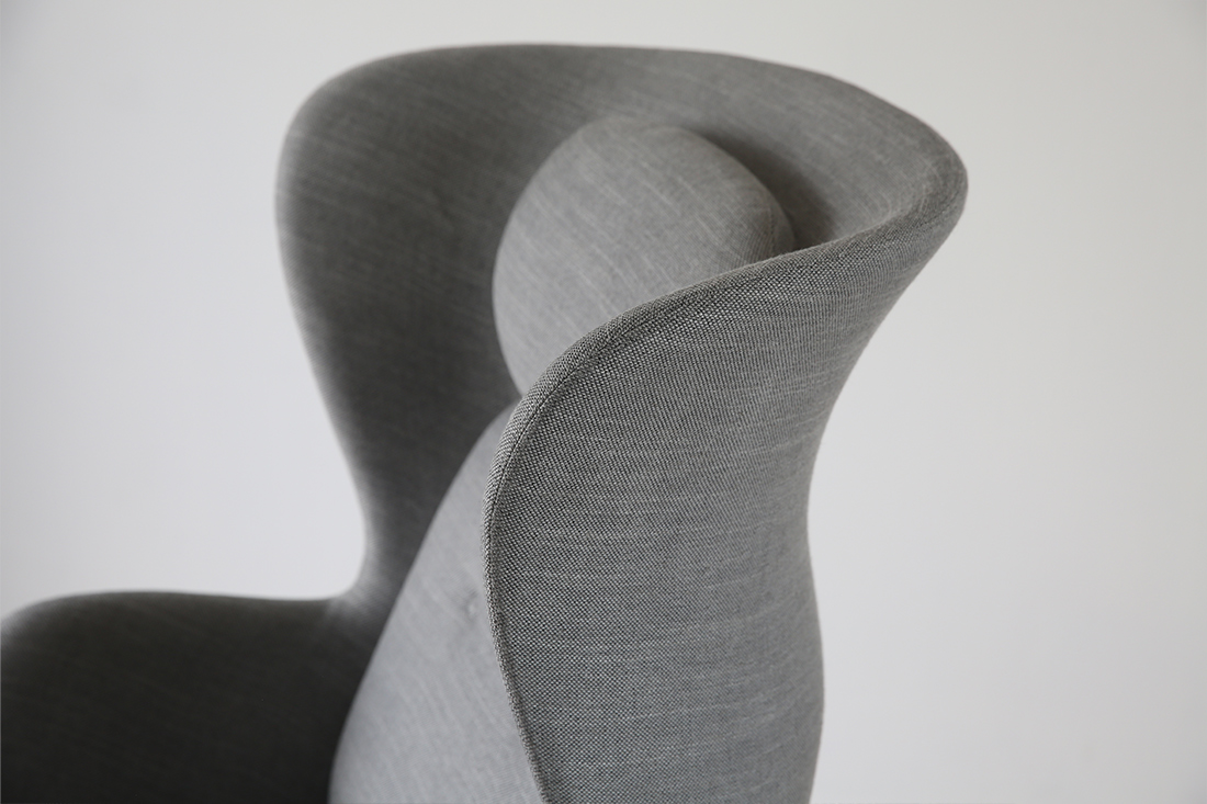 耳元を包み込むようなシェルデザインや、彫刻的な曲線美といったエッグチェアのエッセンスを受け継ぎながら、ハイメ・アジョンにしか表現できない自由な感性で、新たなラウンジチェアへと昇華させました。