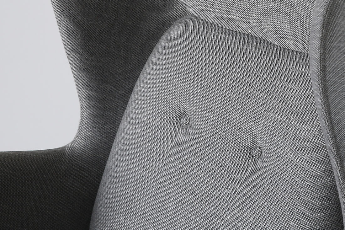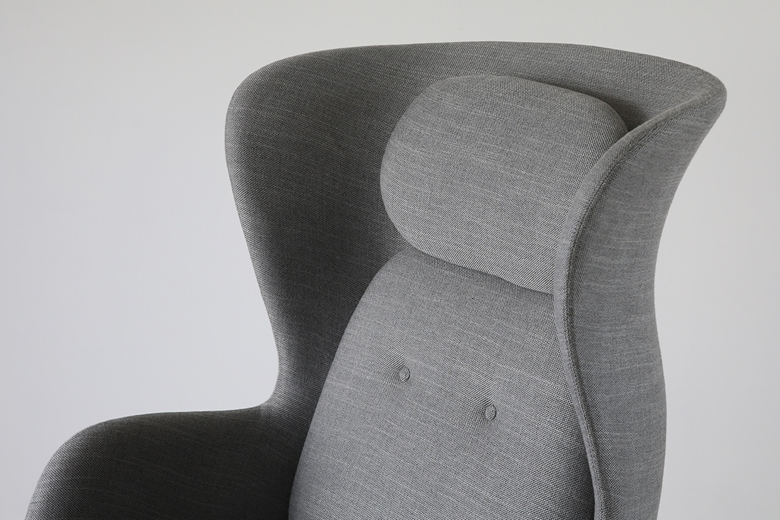 そして何よりも、この椅子ならではの特長が、背もたれの高さと、両サイドのやわらかな張り出し。 フリッツ・ハンセンを代表する名作「エッグチェア」にも通ずるものがあります。 視線や音をやさしく遮りながら、まるで自分だけのコクーン(繭)の中に入ったような感覚に。