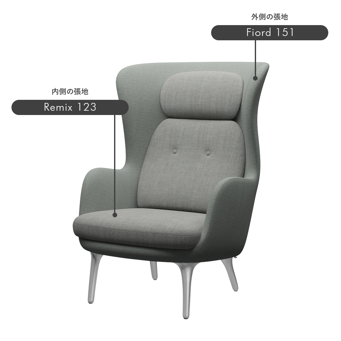 シェル部分(外側)とクッション部分(内側)の張地は別々に選ぶことが可能です。色や素材を変えることで、自分だけの特別なロオチェアを創り出すことができます。