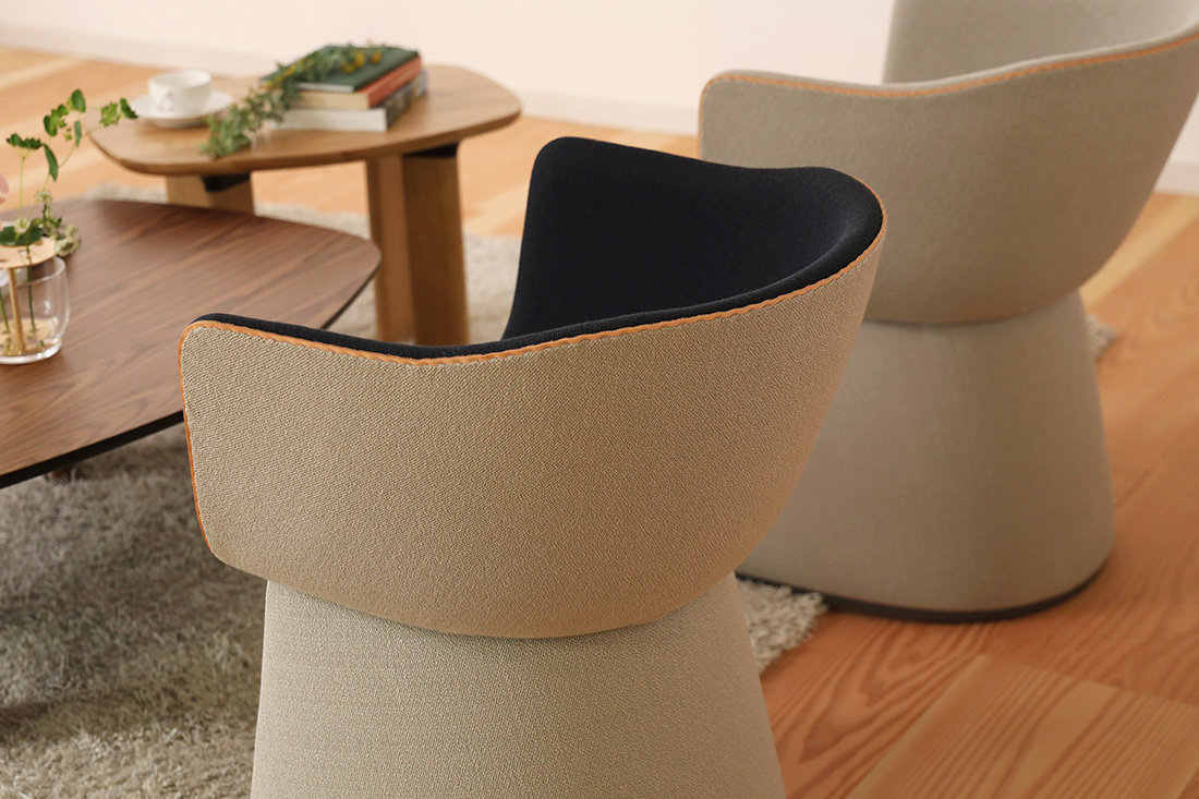 シェル内の張地を変えて二色にすると、デザインに奥行きと遊び心が生まれ、個性的な印象になります。内側と外側の色の組み合わせによって表情が大きく変わり、空間にアクセントを加えることができます。