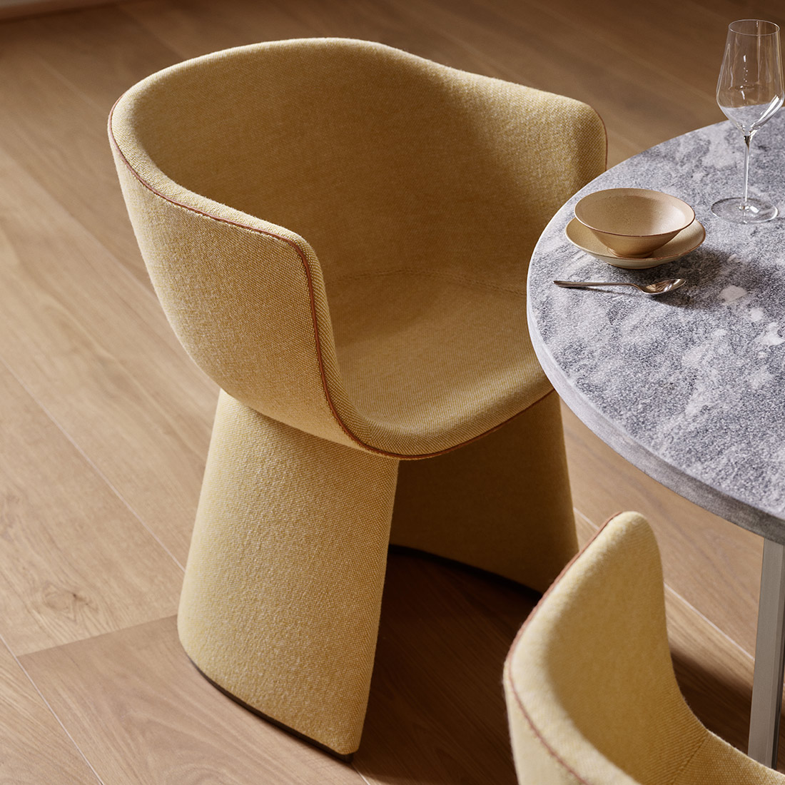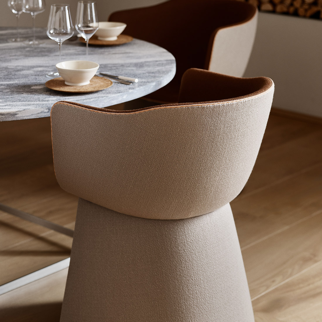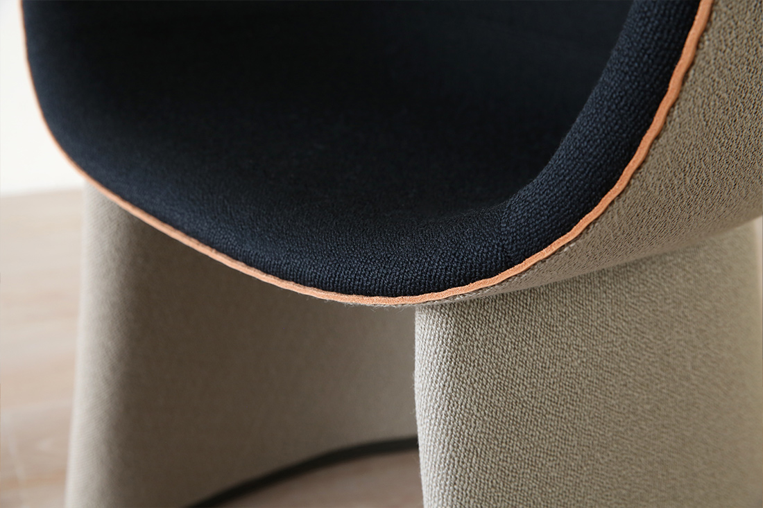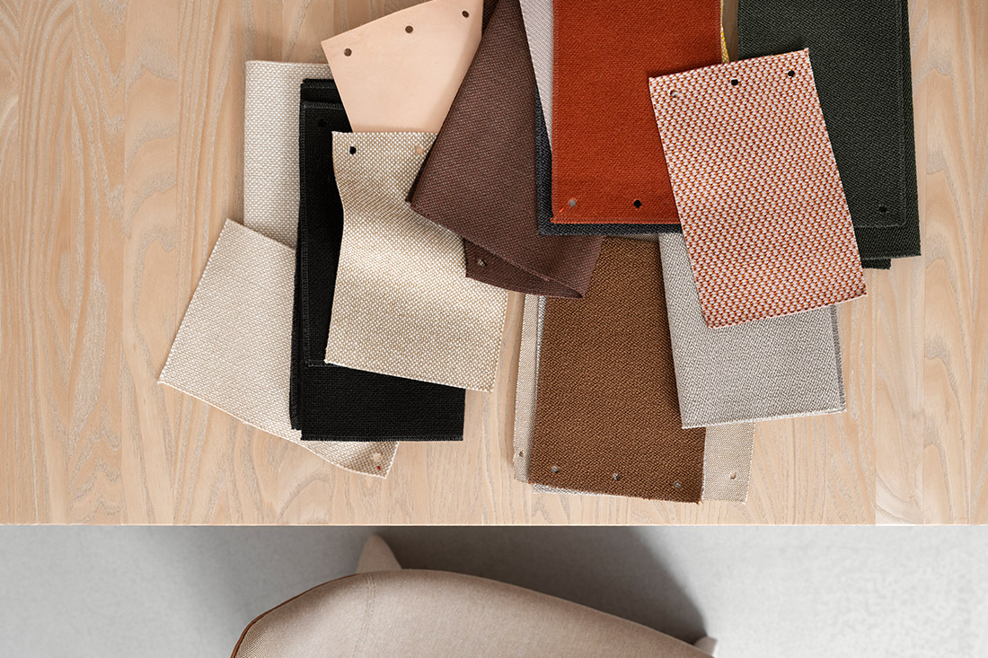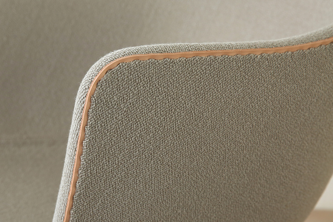 ファブリックには、ヨーロッパの一流ブランド御用達のテキスタイルメーカー、Kvadrat(クヴァドラ)社製の上質なウール生地を採用可能です。やわらかで温かみのある印象を持ち、空間にぬくもりと彩りを添えるファブリックは、豊富なカラーバリエーションと織りの表情が魅力。まさに“自分だけの特別な一脚”を叶えるための素材です。