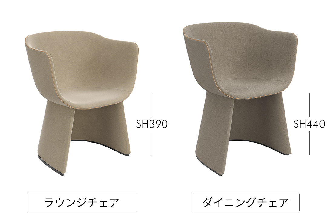 座面高39cmのラウンジチェア(写真左)と座面高44cmのダイニングチェア(写真右)の2タイプを展開。