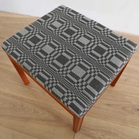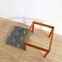 フィンランドを代表するテキスタイルブランド「Johanna Gullichsen(ヨハンナ・グリクセン)」。 フィンランドの伝統的な手法で織られた織布は、しっかりとした厚みと張り、そして立体感のある模様が特徴です。 北欧の生地でありながら、何処となく和の雰囲気も醸し出し、日本の建築、インテリアにスッと馴染みます。 深い褐色の木肌と、ヨハンナ・グリクセンのシックな生地で、落ち着いた大人っぽい印象のスツールに仕上がっています。