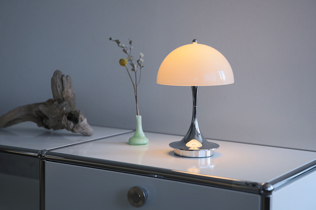 オパールシェードにクロームメッキを合わせたモデルは、パントンの遊び心に「大人っぽさ」をプラス。従来の可愛らしさに、モダンなヴィンテージ感が同居する全く新しい表情を見せてくれます