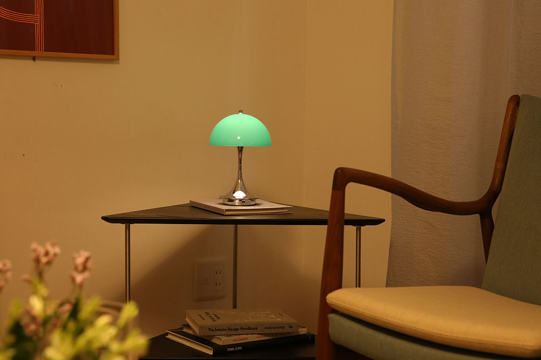 パンテラは可愛いけれど、定番すぎてみんな持っているし、自分の部屋には少し甘すぎるかな…と悩んでいました。でも、このオパール×クロームを見た時に「これだ!」と。クロームの金属感があるおかげでフェミニンになりすぎず、男性も手に取りやすくなりました。消している時の佇まいが大人っぽくて、他のパンテラにはない個性が魅力的です。