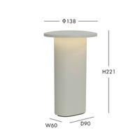 背が高い(約φ138×H221mm)設計のため、ダイニングテーブルやデスクに置いたとき、手元を照らしやすいのが特長です。