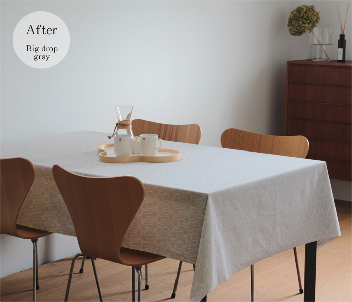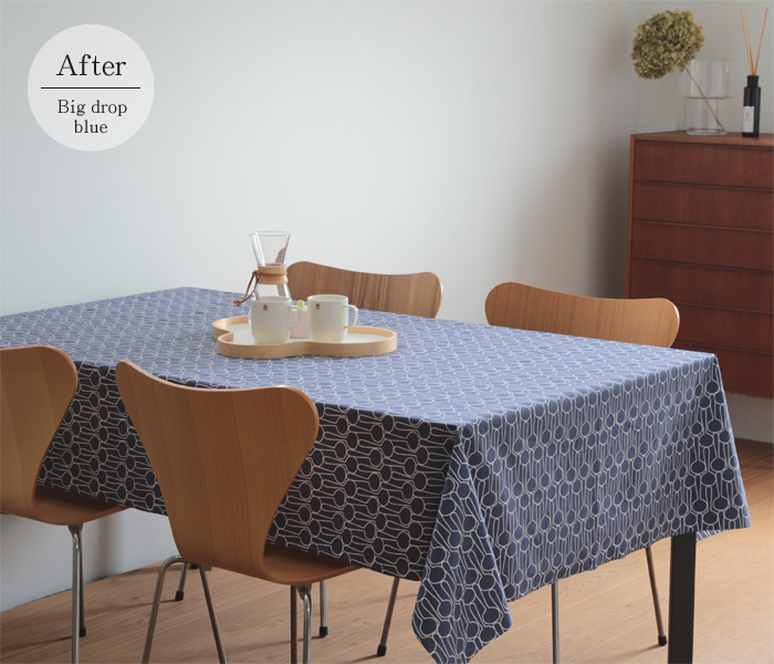 お食事中、醤油、ソース、コーヒーなどがこぼれても、あわてなくて大丈夫!はっ水加工を施してあるので、通常のファブリックに比べて汚れがつきにくく、布巾などでさっと簡単に拭くだけで簡単にお手入れができます。