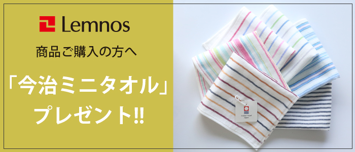 ※Lemnos(レムノス)の対象商品1注文につき、ミニタオル1枚をプレゼント致します。 ※ミニタオルの色、柄は選べません。 ※ミニタオルは数量限定ですので、無くなり次第終了となります。予めご了承ください。