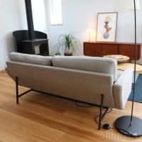 それらが、彼の理念とする「静けさの中にあるエレガンス」のもとで融合し、唯一無二の洗練されたソファが完成しました。