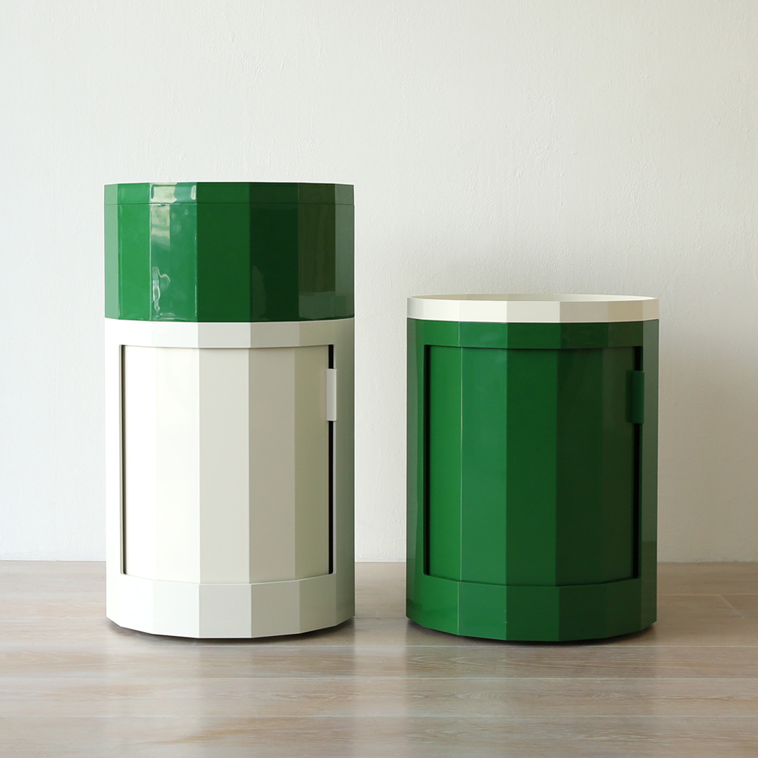 一見するとシンプルながらも、その独特のフォルムが強い存在感を放ちます。お部屋の空間の中で大きく面積をとる家具と言えばソファやダイニングテーブル。大きく面積をとる分、あまり個性的なデザインのもの選ばない傾向にありますが、サイドテーブルやちょっとした収納家具であれば、冒険もしやすいですよね。ファセットキャビネットであれば、今お持ちの家具とうまく調和しつつ、空間に個性を出すことができます。