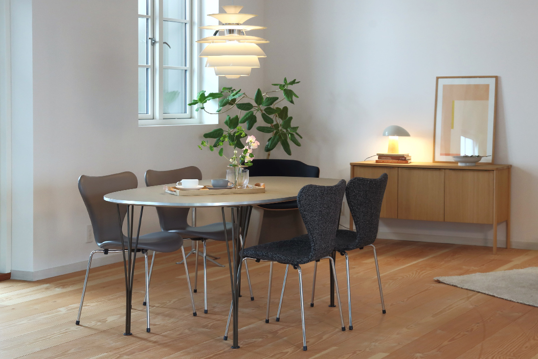 クラフツマンシップと北欧のデザイン哲学が融合した家具は、木製以外にもスチールやレザーといった上質な素材と、洗練されたフォルムが特徴。セブンチェアやエッグチェアなど、彫刻作品のような名作の数々。単なる家具ではなく、空間全体を洗練された雰囲気に包み込みます。家具のみならず、照明やアクセサリーまで、トータルインテリアを提案できる豊富なラインナップも魅力です。