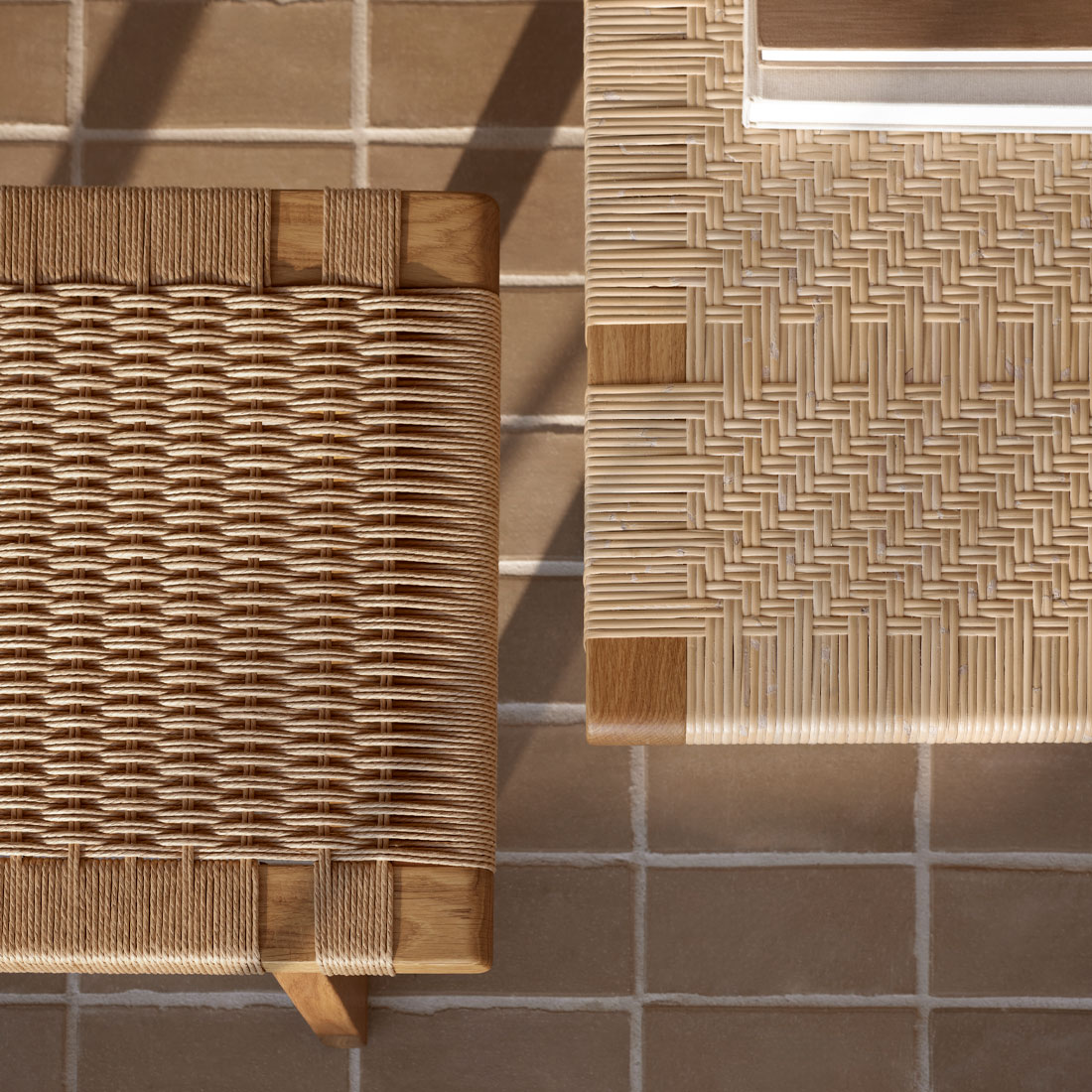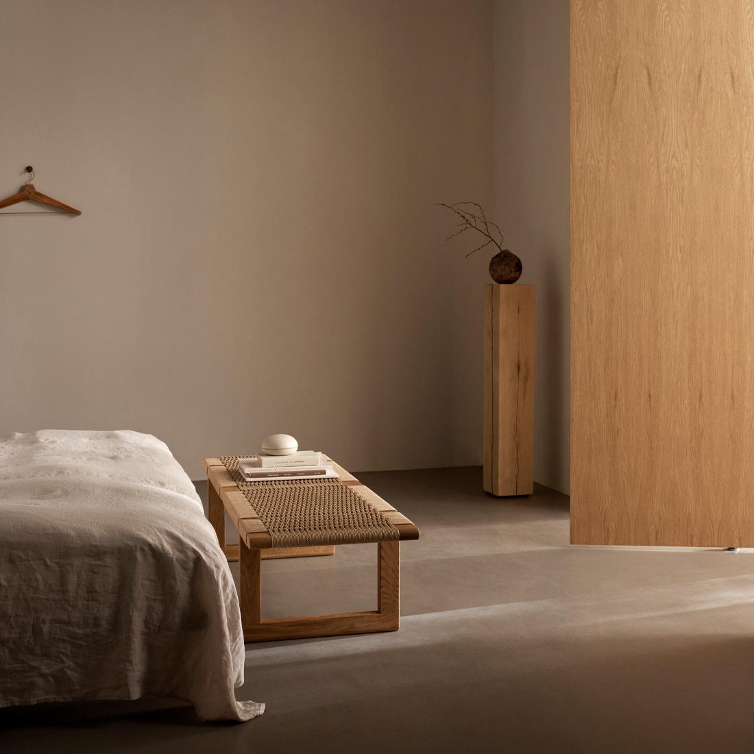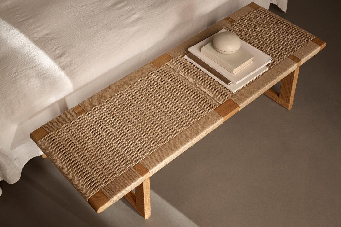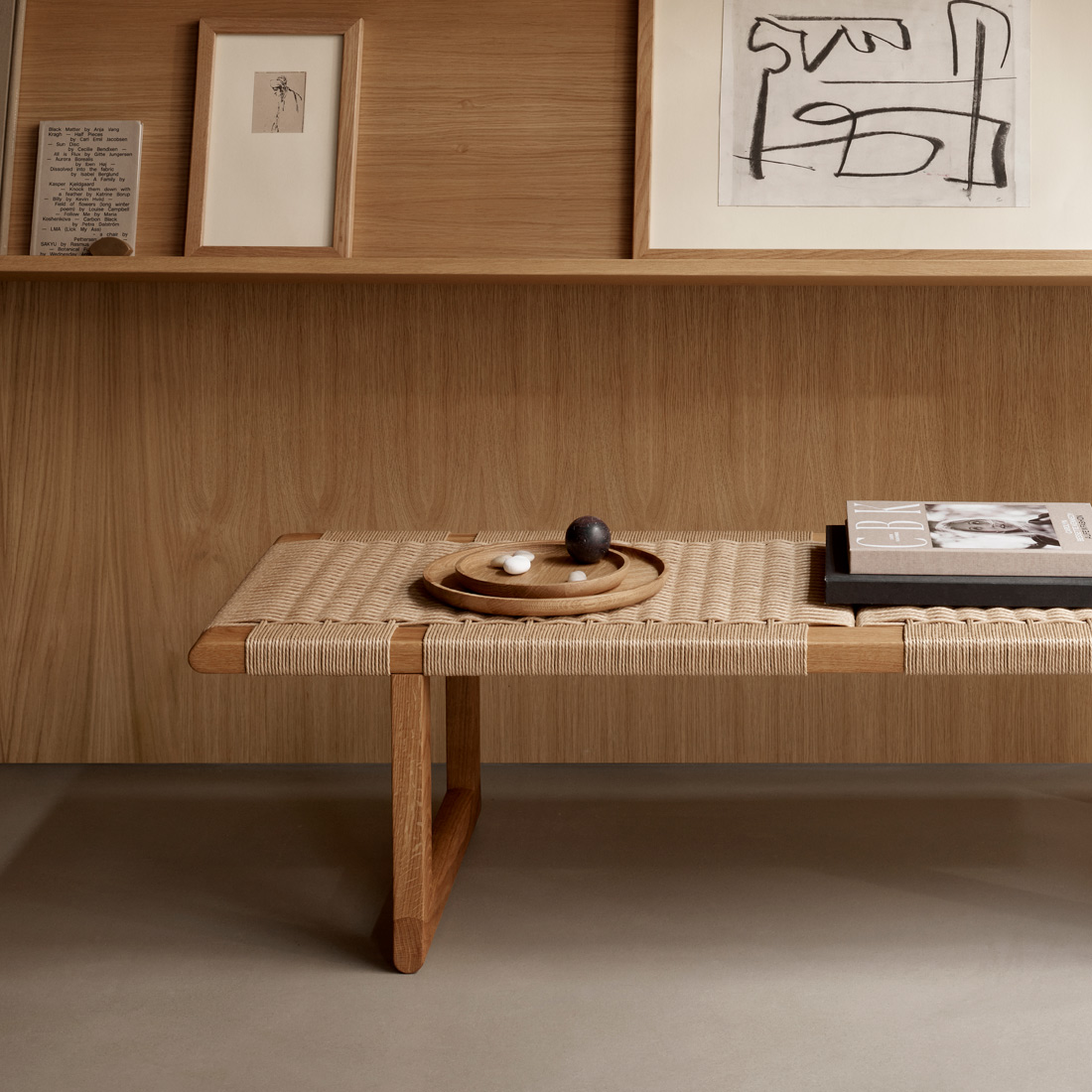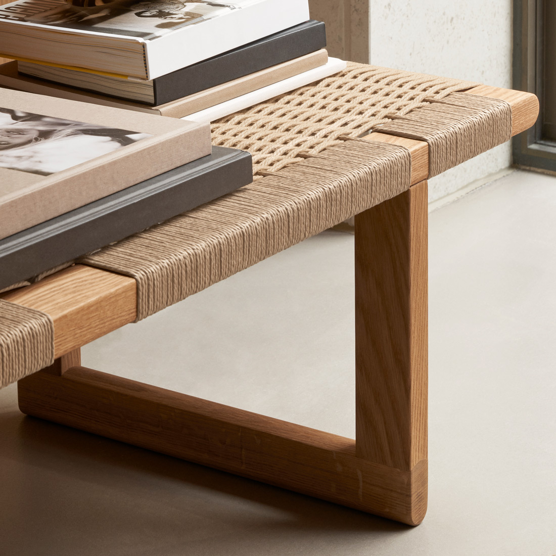 ボーエ・モーエンセンがデザインしたBM0488コーヒーテーブルは、その控えめな美しさと細やかな職人技巧により高く評価されています。今回、FSC®認定を受けたオーク材のフレームにペーパーコードをダブル平編みで仕上げた、BM0489テーブル・ベンチが新たなバリエーションとして登場しました。