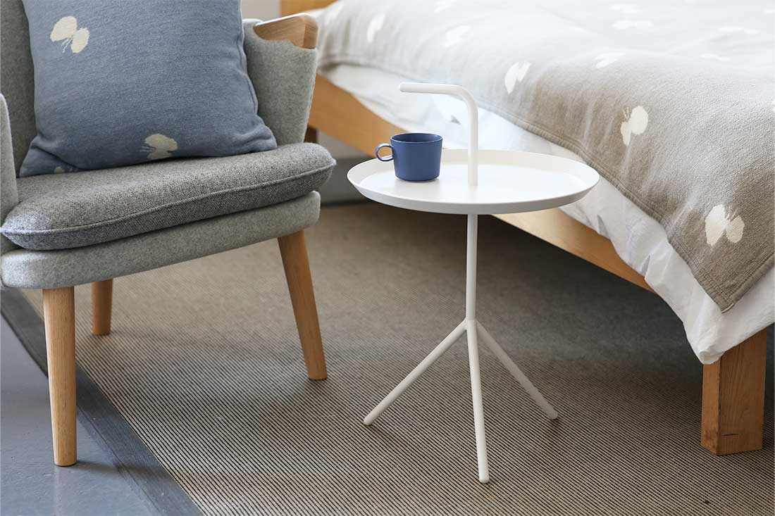 スチールで作られているサイドテーブル。重量も軽く上部の曲がった所が取っ手になって移動も楽々。色々な場所で活躍してくれそうです。カラーバリエーションがたくさんあり、お部屋の雰囲気に合わせてカラーが選べるのもうれしいですね。