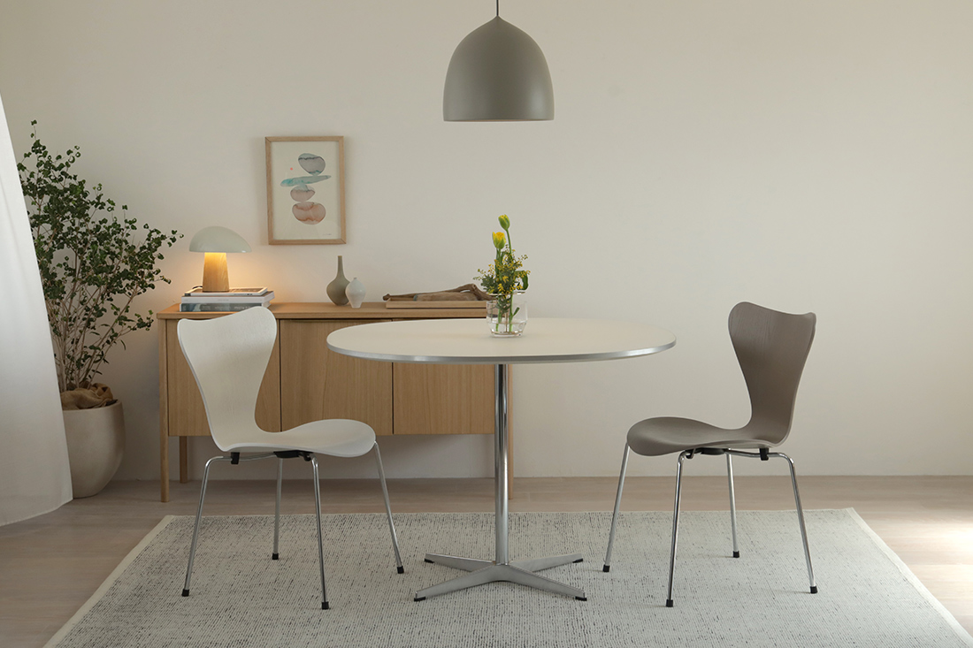 様々な丸テーブルがある中で、唯一無二のモダンで洗練されたフォルムが特徴のFRITZ HANSEN「スーパー円テーブル」。
