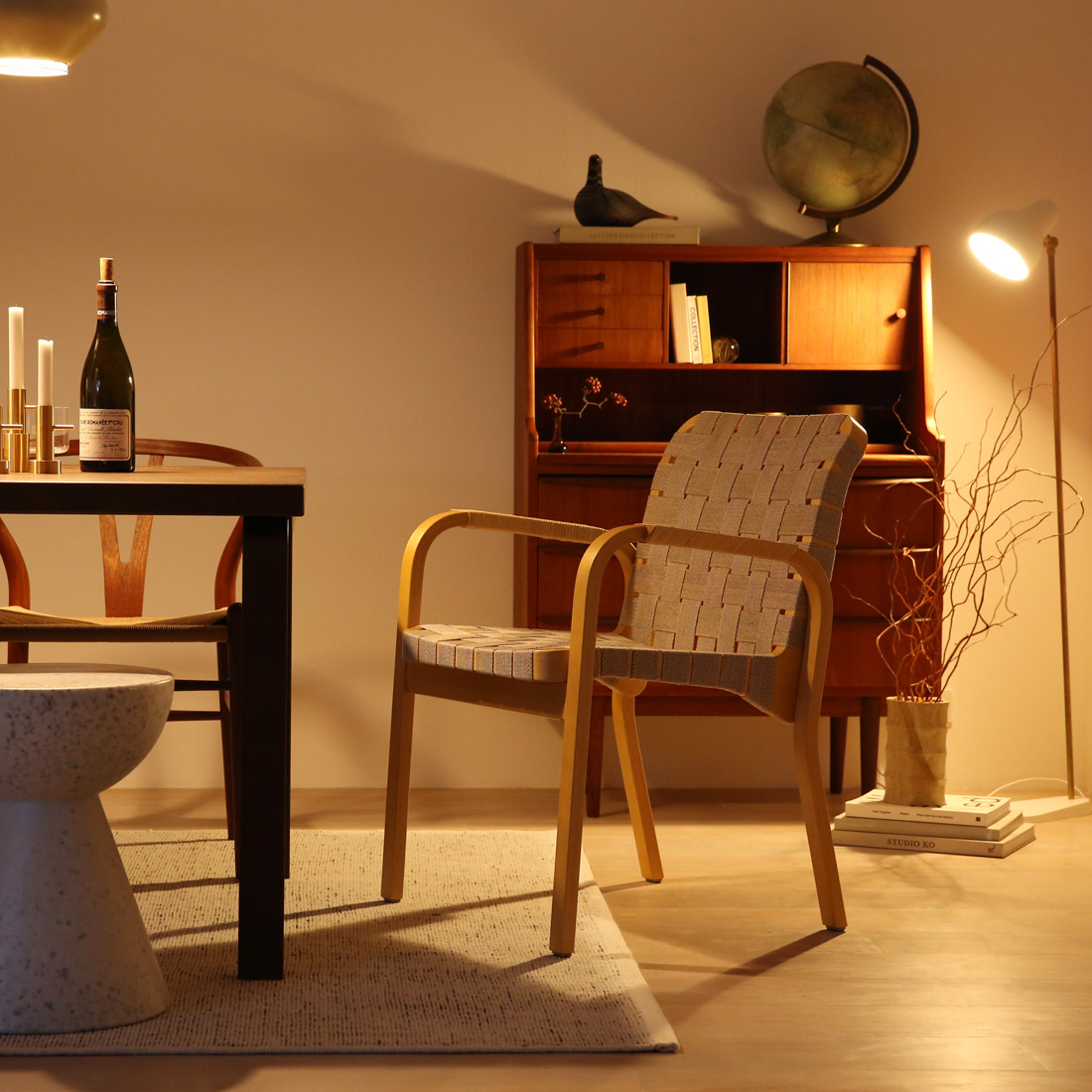 アームチェア45はダイニングテーブル、書斎のデスク、リビングの主役として、さまざまな空間に馴染みます。