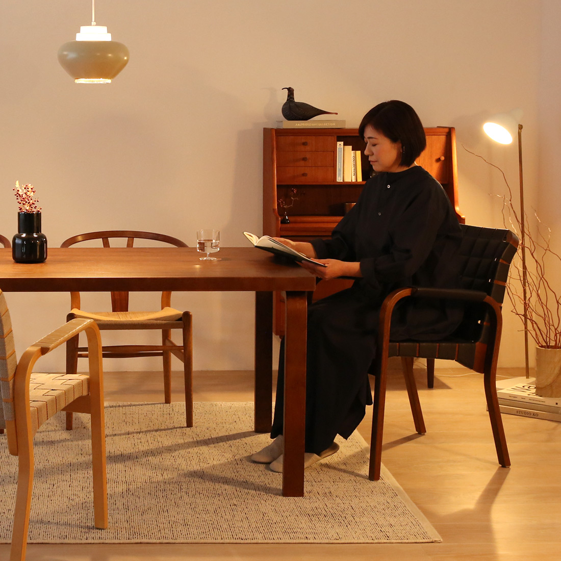 アームチェア45はダイニングテーブル、書斎のデスク、リビングの主役として、さまざまな空間に馴染みます。