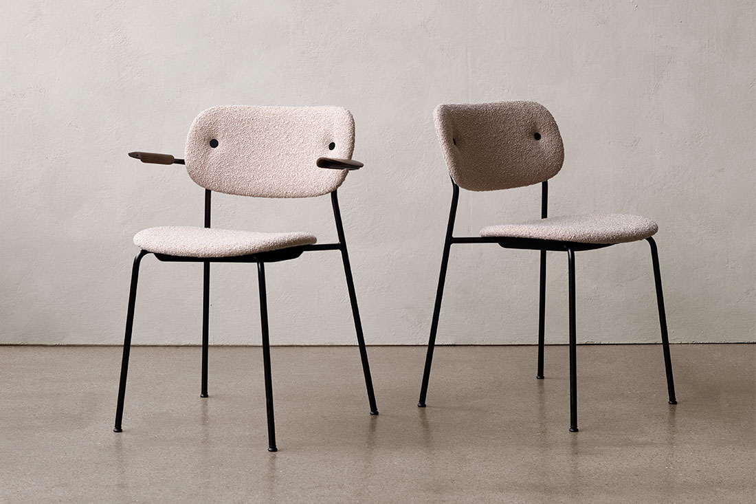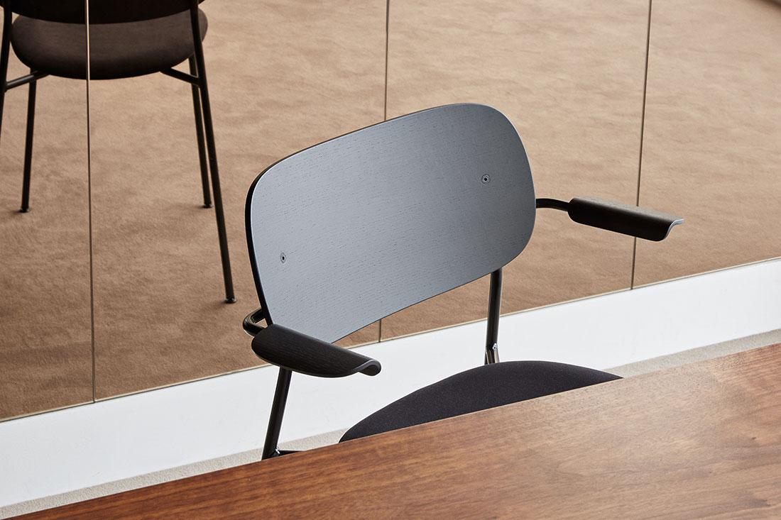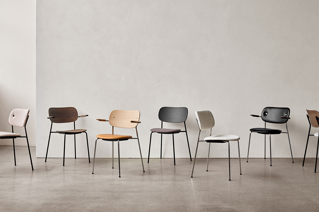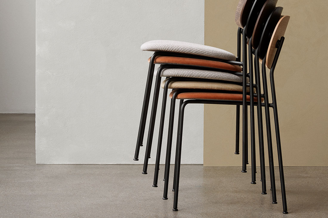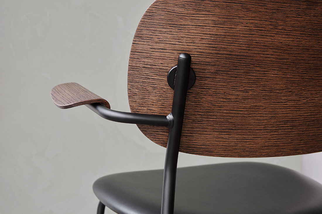 名前にある 「Co」 は 「co-creation=共に創る」という意味が込められています。使う人や空間との調和を大切にする、その想いがデザインにも表れています。軽やかで扱いやすく、それでいて空間にすっと馴染む美しい佇まいのチェアです。