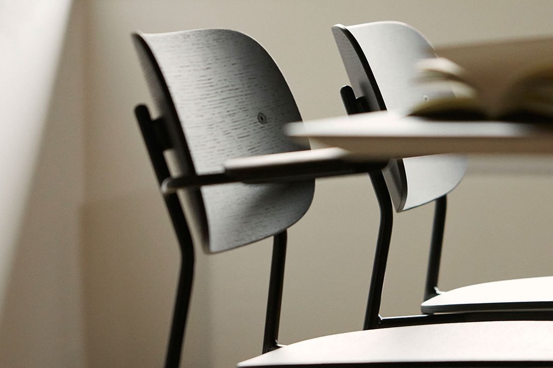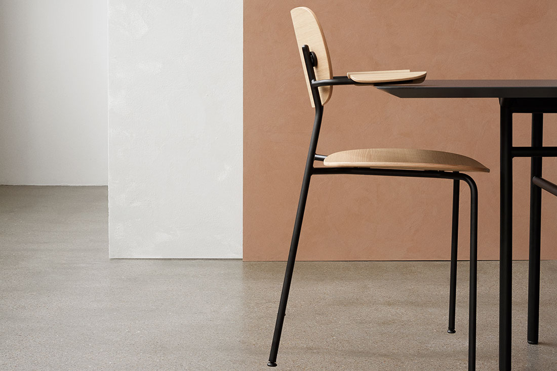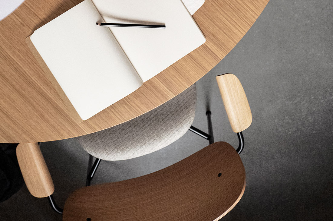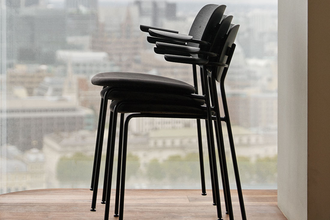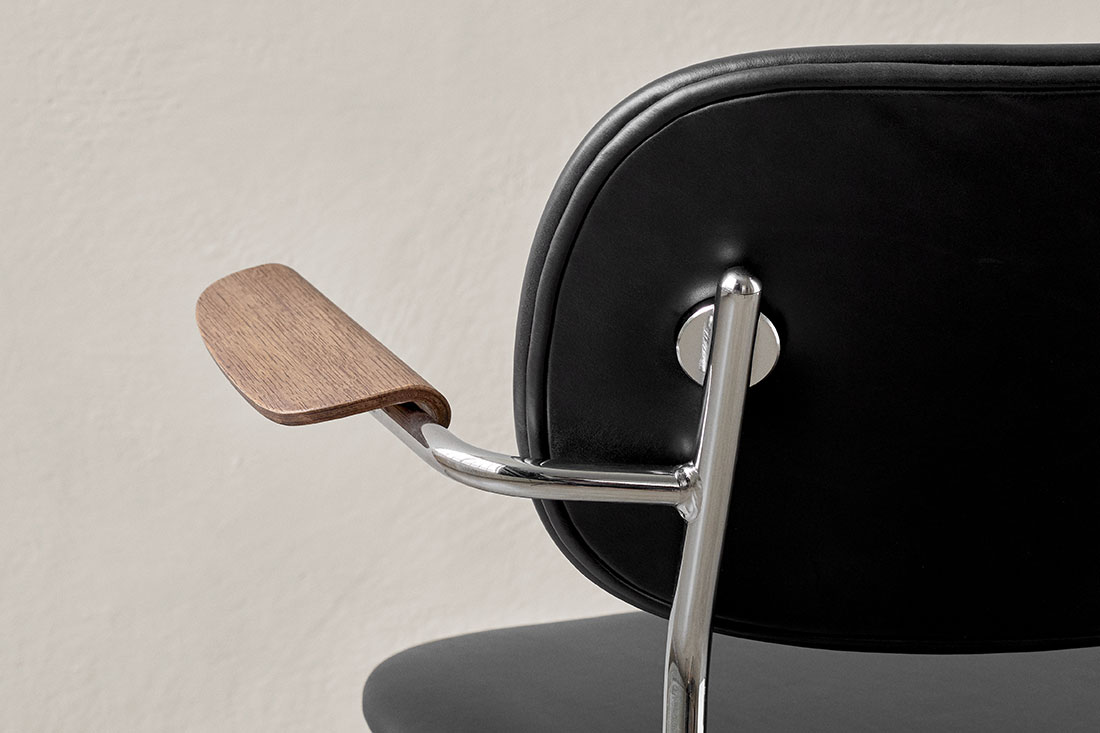 名前にある 「Co」 は 「co-creation=共に創る」という意味が込められています。使う人や空間との調和を大切にする、その想いがデザインにも表れています。軽やかで扱いやすく、それでいて空間にすっと馴染む美しい佇まいのチェアです。