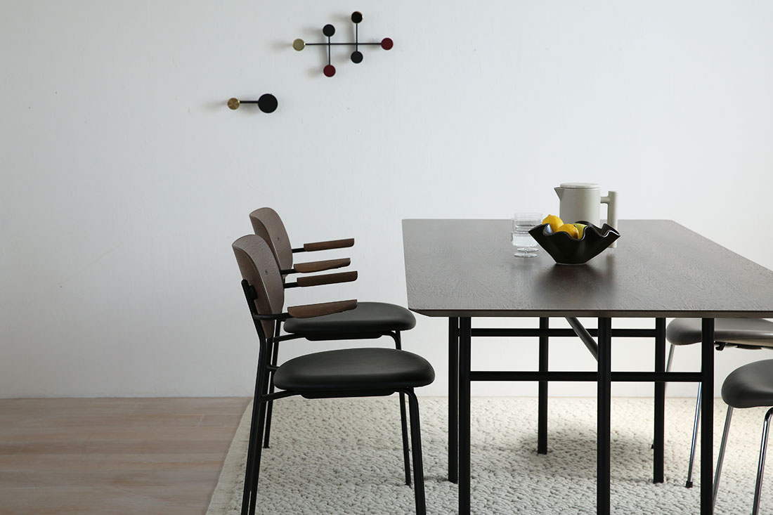 Co Dining Chair は、コンパクトでありながら、さまざまな空間に自然と馴染むデザインです。細めのシルエットでテーブルの下にもすっきり収まり、ダイニングはもちろん、オフィスやカフェにも最適です。