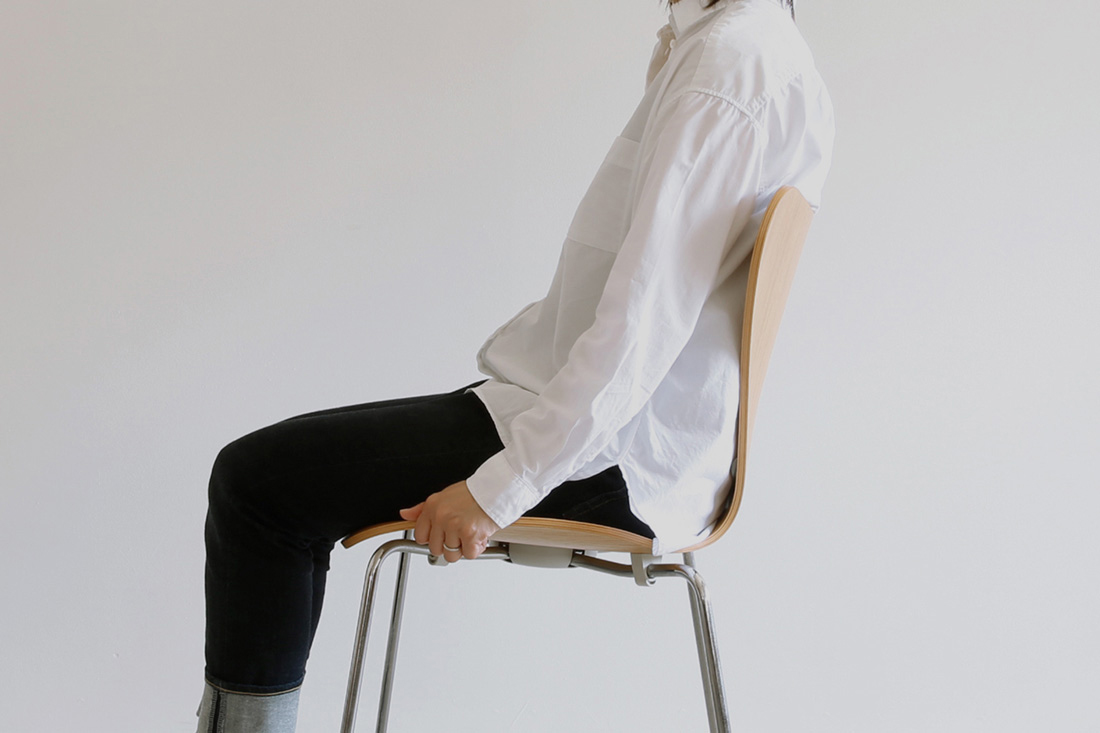 成形合板から生まれる背もたれのしなり。適度な弾力性が、座っている間も腰を優しく、しっかりと支えてくれます。