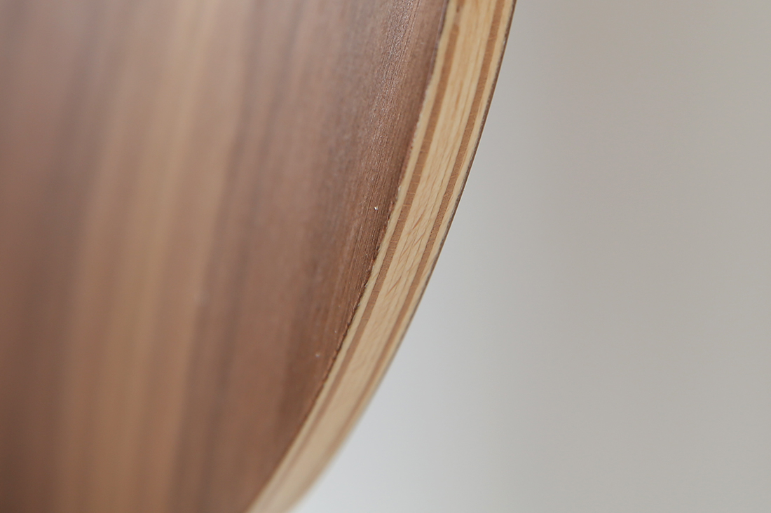 重厚で落ち着いた色調が美しいウォルナット。サラサラとした手触りですが、マットで上品なツヤがあります。素材本来のツヤに加え、曲面でできたフォルムによって光沢と陰影が生まれ、光の色や強さ、角度によって違った表情を見せてくれます。