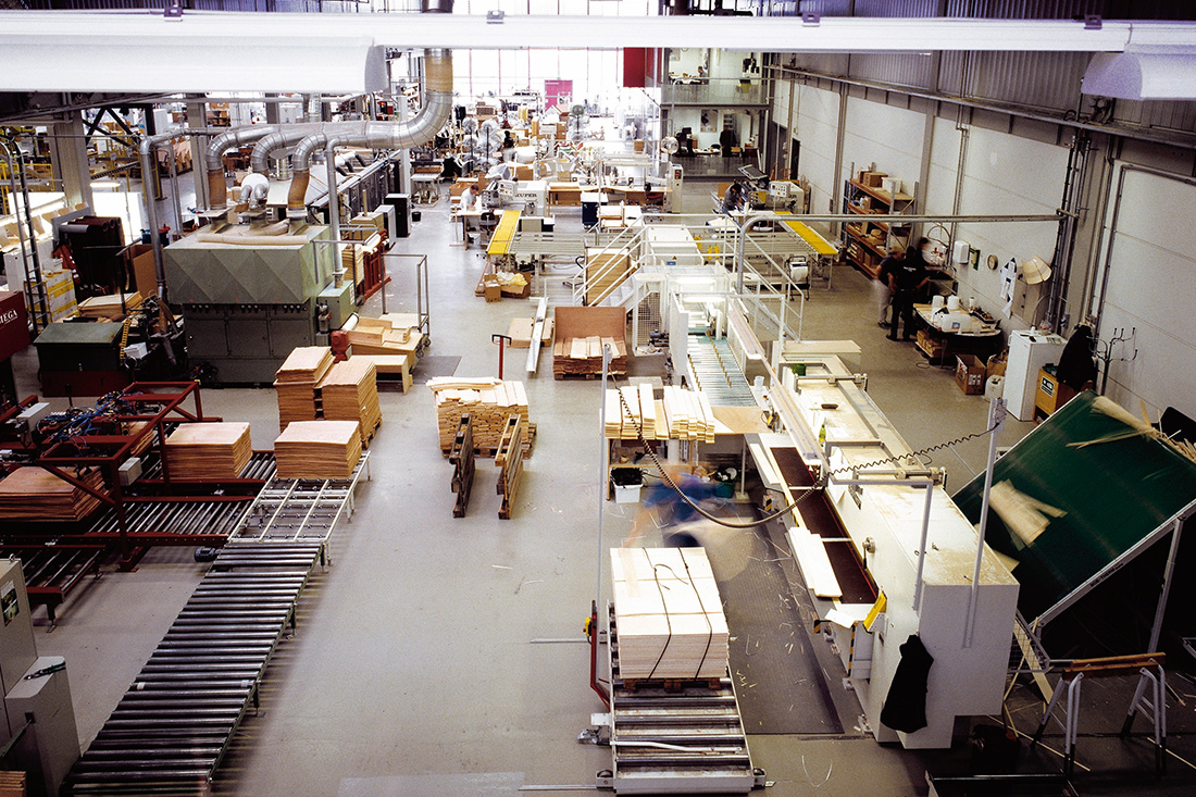「最高のクオリティの機能的家具を、工業的生産プロセスによって生産する」という理念に基づいて、無駄なく効率的な生産ラインが組まれています。