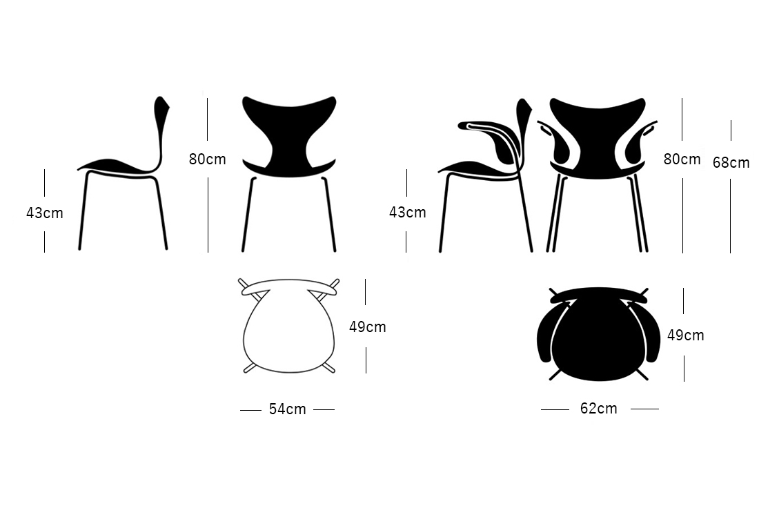 ゆったり広い座面と背もたれの湾曲は、セブンチェアやアントチェアと比べてみても一目瞭然。