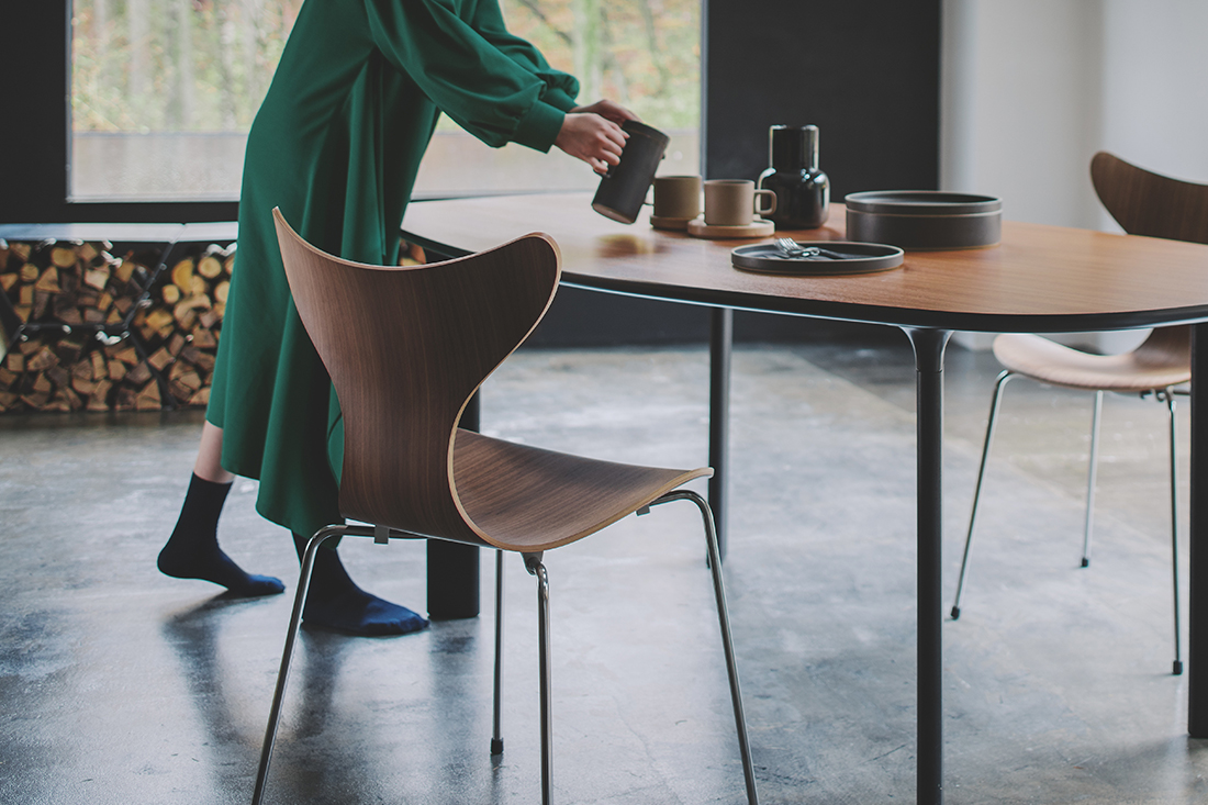 2020年、ヤコブセンがデザインした最後のチェアであるリリーの50周年を記念して、デザインされた当時に製造していたナチュラルウッドモデルがウォルナットで復刻しました。