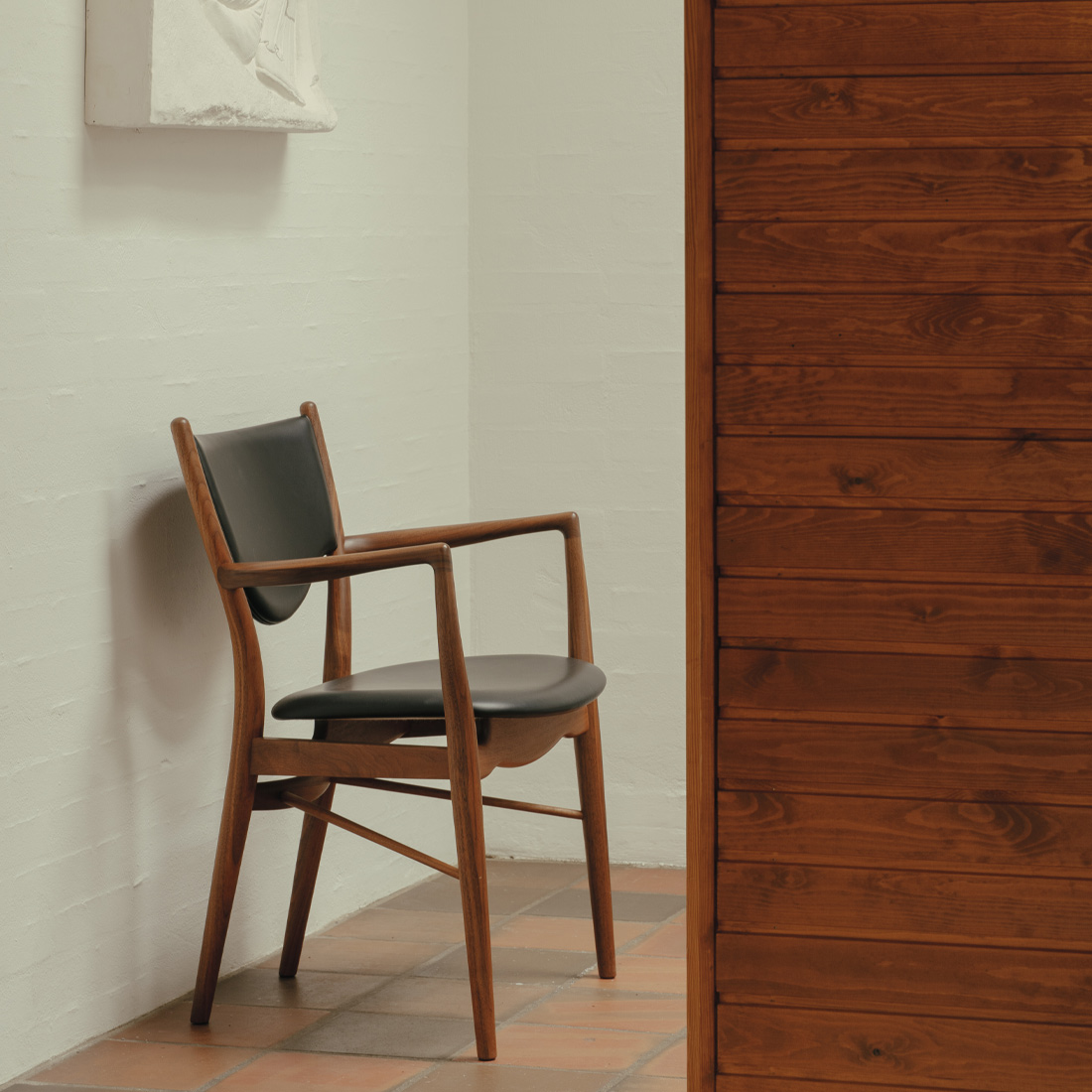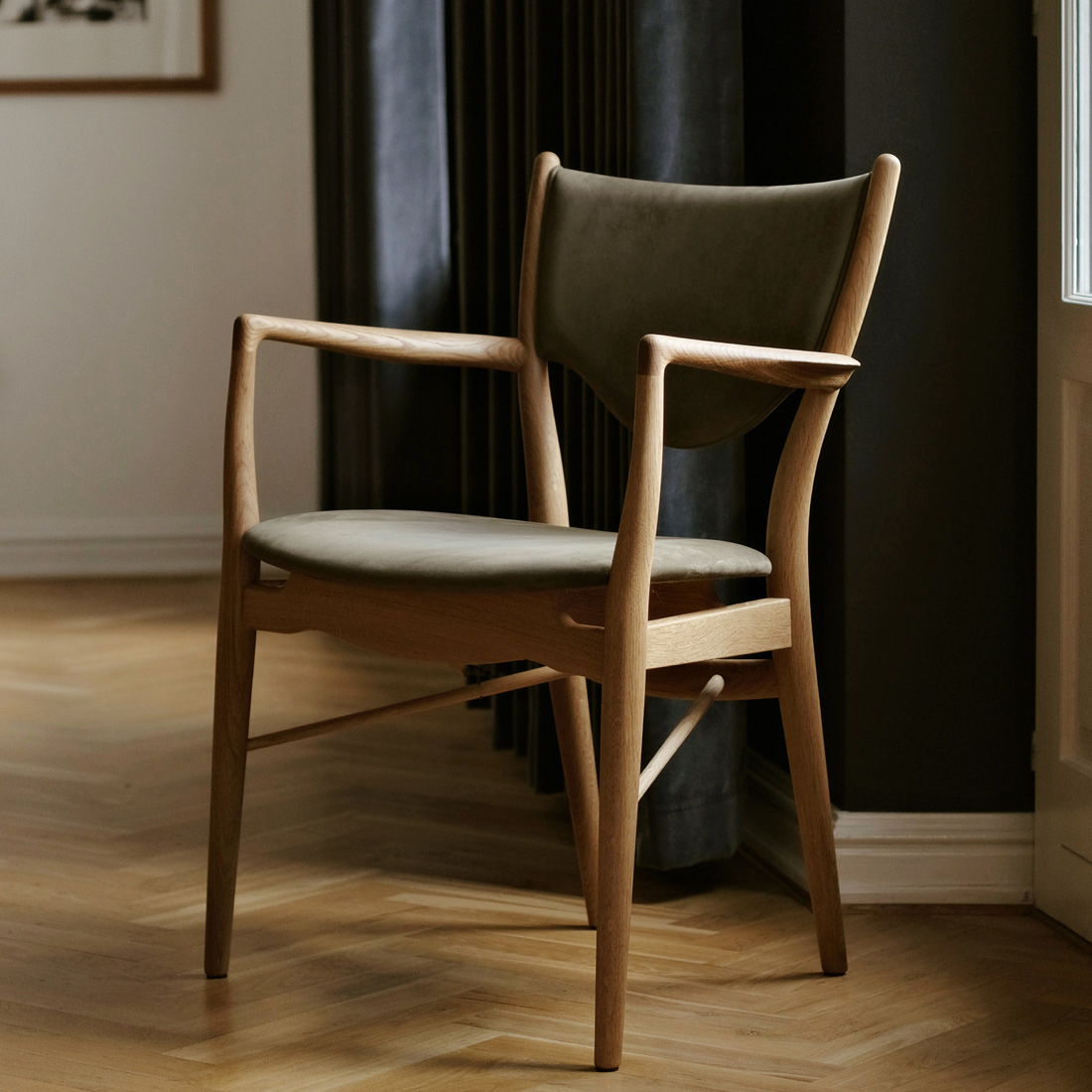 1946年にフィン・ユールが家具職人ニールス・ヴォッダーのためにデザインした「46 アームチェア」は、エレガントで時代を超えて愛される名作です。