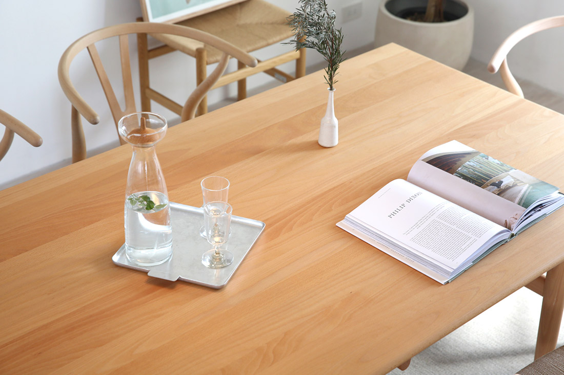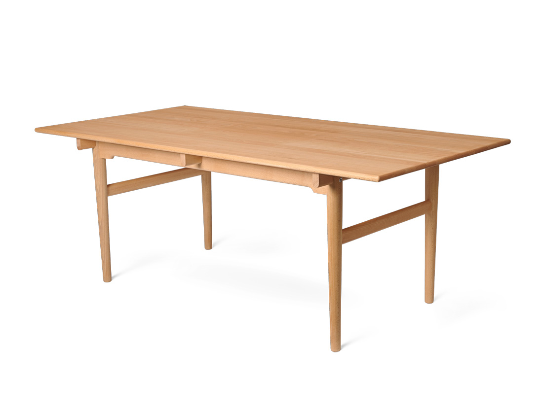 広葉樹材の資質を存分に引き出した優美なダイニングテーブル。 CH327は幅が190cmあり、ゆったりとしたサイズ感です。4~6人での使用を想定されており、6人でもゆとりを持って使えます。