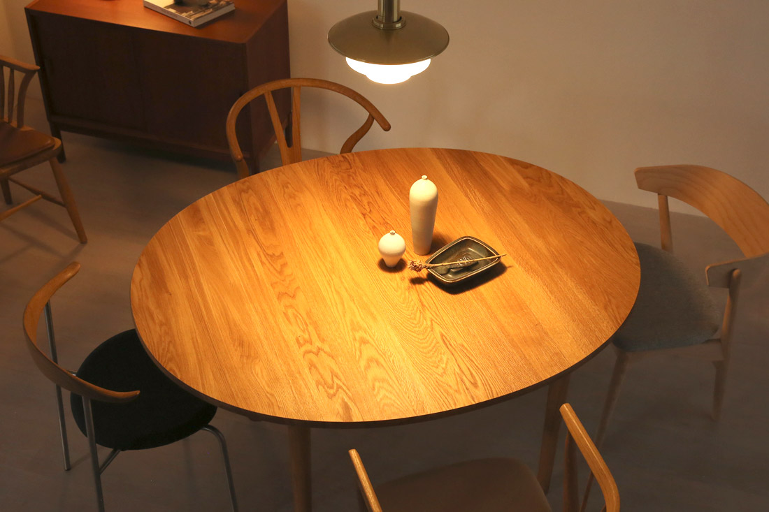 円卓より広々すっきり、個性的な楕円型のテーブルCH337