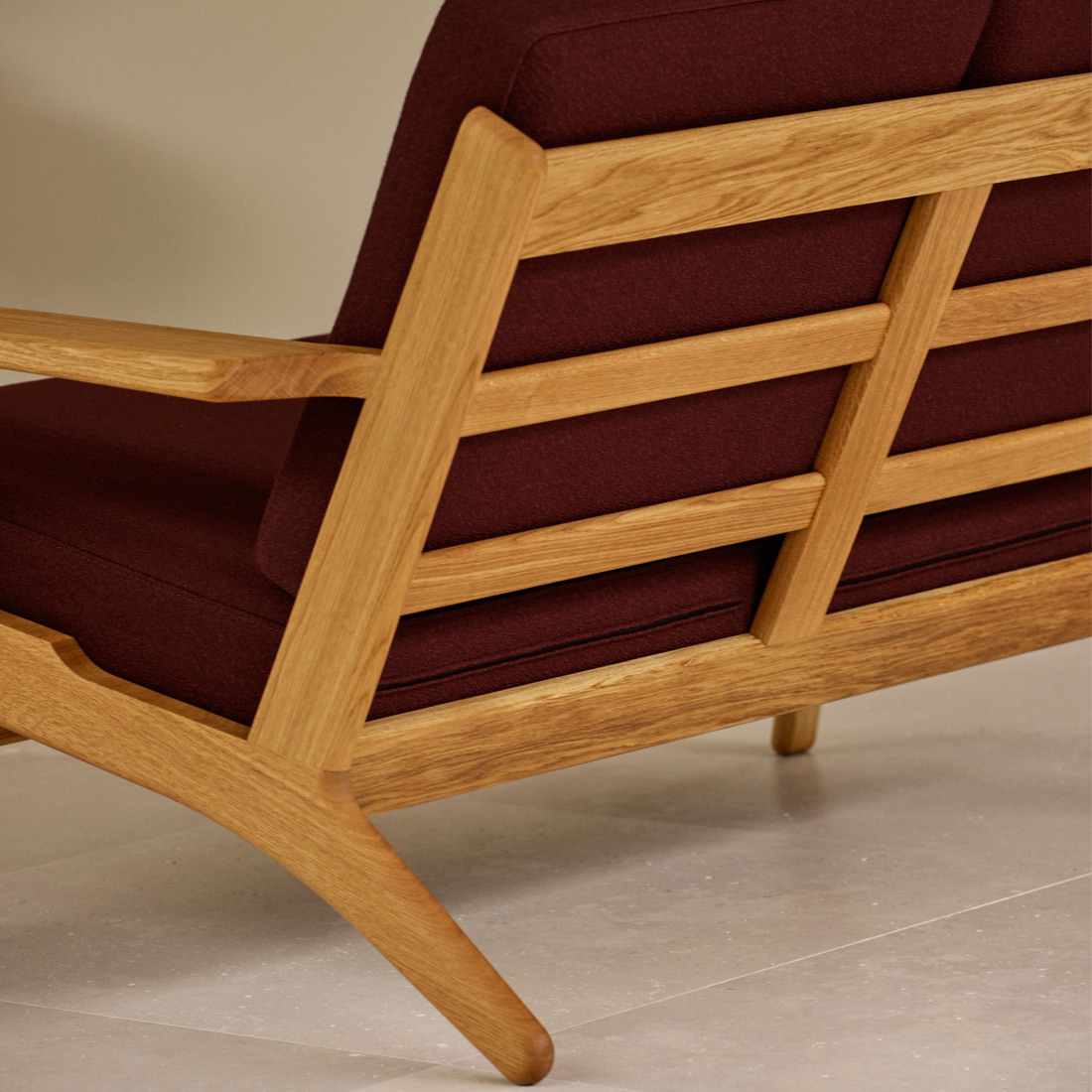 カール・ハンセン&サンが手がけるCH290シリーズでは、オリジナルのデザインを忠実に再現しつつ、ウェグナー事務所の修正意見を反映し、座り心地を大きく左右するクッションの細部に改良が施されています。