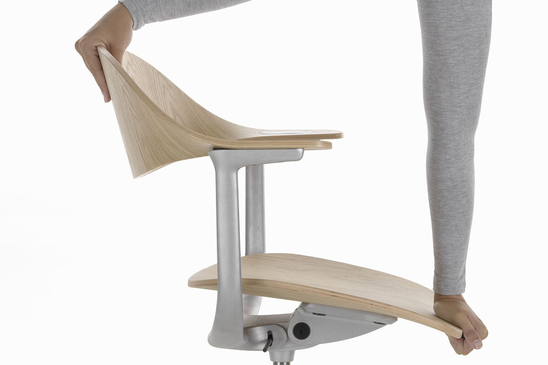 背もたれと座面が連動し、体の動きに滑らかにフィットする座り心地。その柔軟性により、座る人は身体を自由に動かせます。
