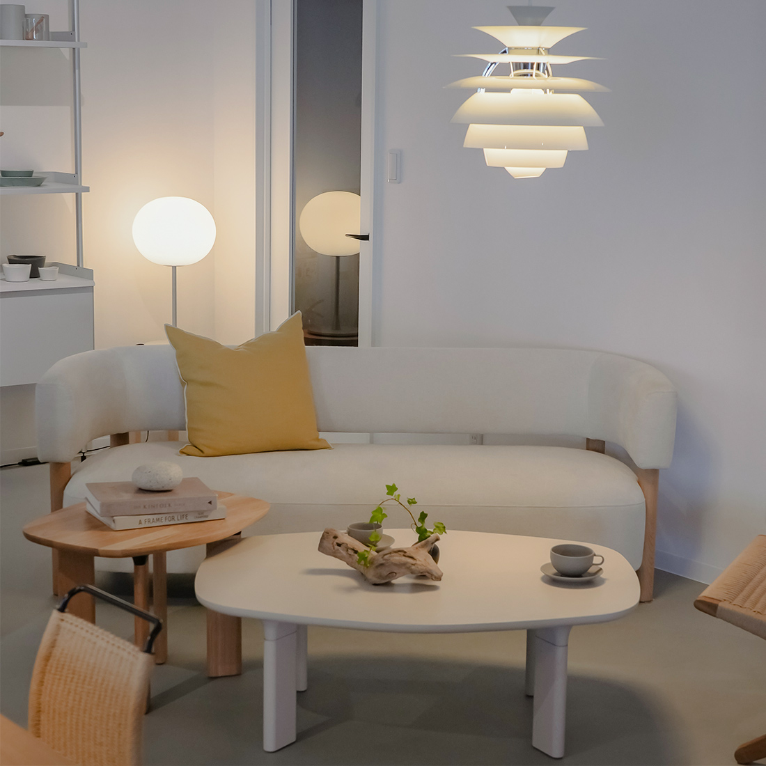 どこから見てもやわらかな丸みを感じる、U字型のフォルム。角のないやさしいデザインが、空間に自然と溶け込みます。デンマークデザイン×日本の家具メーカーが生み出す、美しさと心地よさを両立したソファ「N-S03」の魅力をご紹介します。