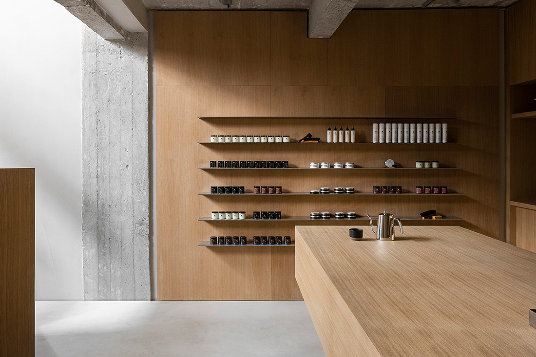 「N-S03」は、コペンハーゲンの女性向けシューズブランド「 NOTABENE(ノータベネ) 」のフラッグシップストアのためにデザインされました。店舗の中は、まるでアーティストのアトリエのような空間。ビル自体は長い歴史を持ち、様々な用途で使われてきたため、その独特な構造が店舗に深みのある雰囲気を醸し出しています。