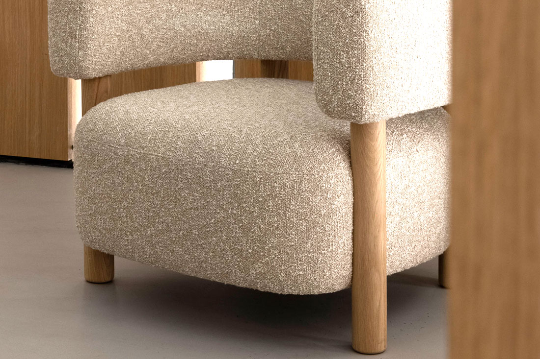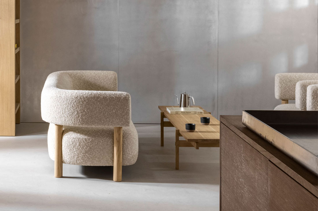 その店舗の中で、リラックスとくつろぎの要素を加え、空間に調和するソファとして「N-S03」が生まれました。日本の洗練された家具製造技術を取り入れることで、靴作りの繊細さと精密さを体現しています。