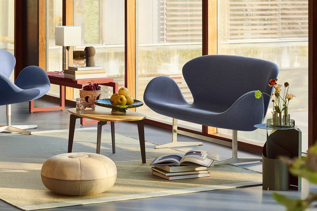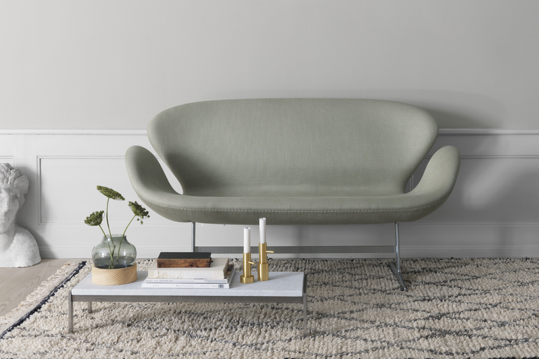 SWAN(スワンソファ)は、 Arne Jacobsen(アルネ・ヤコブセン)が1958年にコペンハーゲンのSAS ロイヤルホテルのためにデザインしたソファです。2000年にフリッツ・ハンセンのコレクションとして復刻されました。曲線のみで構成されるシンプルで特徴的なシェルのフォルムは、見る者に有機的でソフトな印象を与えます。