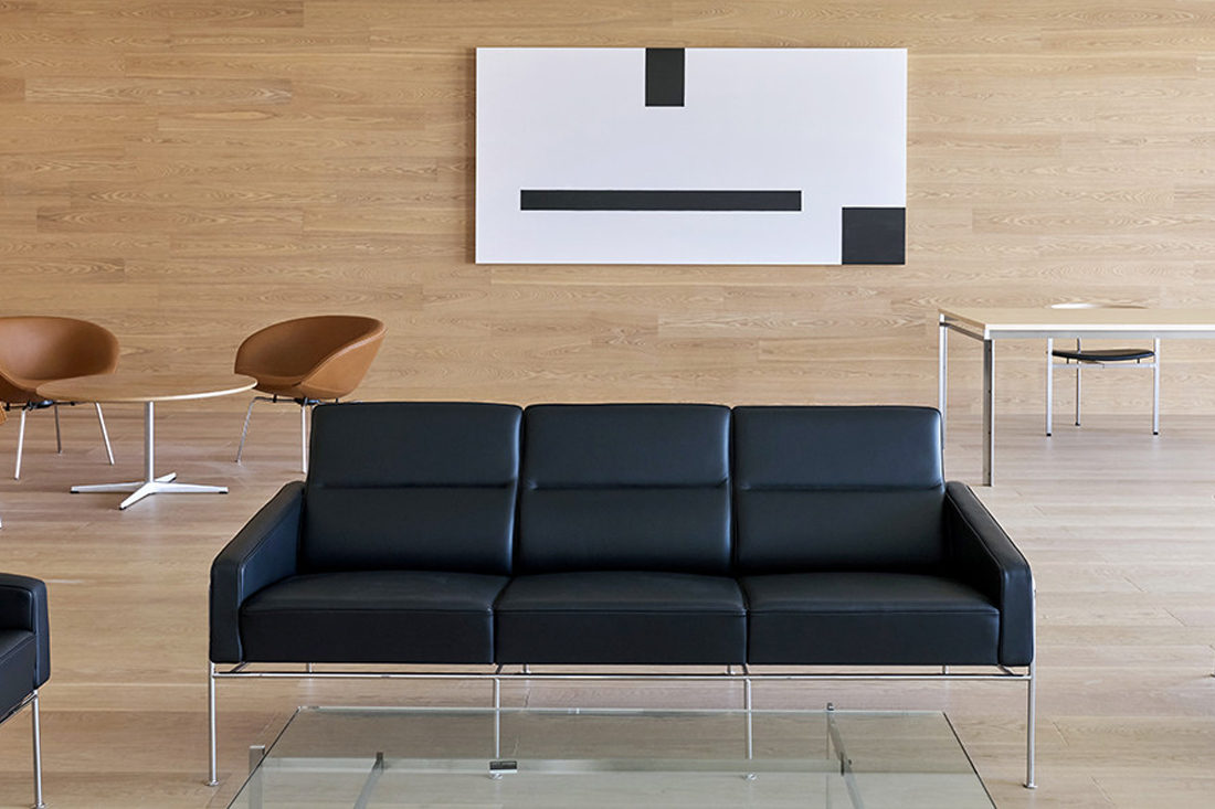 SERIES 3300(3300シリーズ)は、Arne Jacobsen(アルネ・ヤコブセン)が世界初のデザインホテルであるSASロイヤルホテルに直結するSASエアターミナル用にデザインしたソファシリーズです。3300シリーズには、ヤコブセンのラインとプロポーションにおける確かな感覚と、時代に左右されることのないデザインの才能が発揮されています。このシリーズの洗練されたフォルムは、同じくSASロイヤルホテルのためにデザインされたエッグチェアやスワンチェアの有機的なフォルムとコントラストを生み出しています。