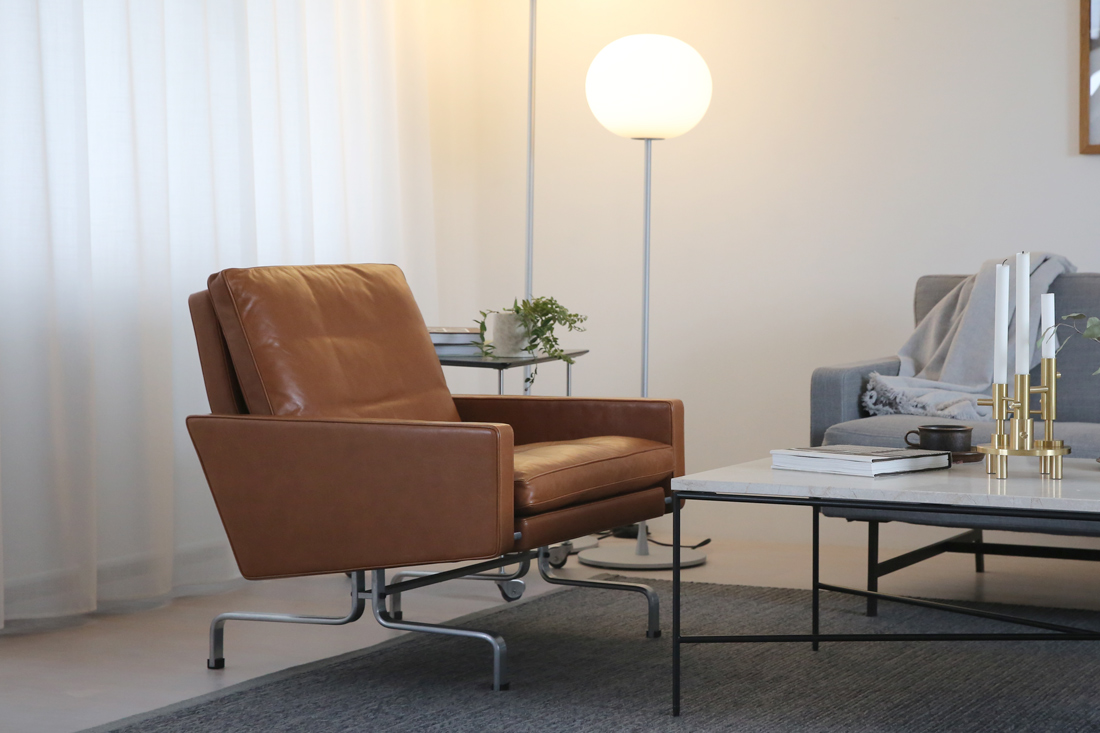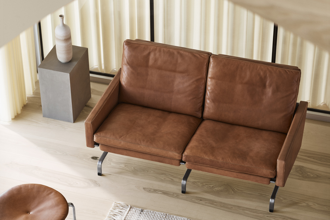 PK31(ピーケー31)は、高品質な素材とミニマリズムを活かすPoul Kjaerholm(ポール・ケアホルム)の才能を見ることができる代表的な作品です。理想的なフォルムを求め、ケアホルムは優雅さと豪華さ、そして快適さが融合したPK31をデザインしました。マットクローム・スプリングスチールのベースが特徴的なPK31シリーズは、ラウンジチェア、2人掛け、3人掛けソファで構成されています。