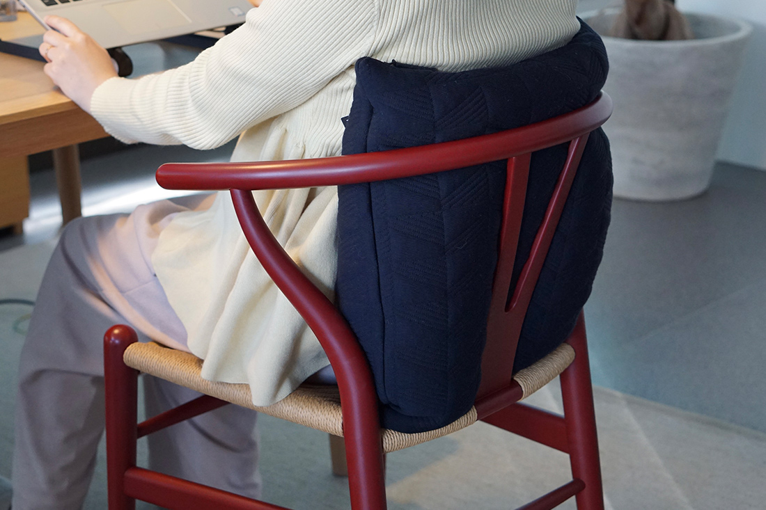 ダイニングチェアでは、背当たりとして使うことで、長時間座る際の快適さが増します。
