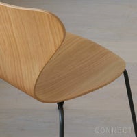 当時、椅子は木を組み合わせて作られるのが主流でしたが、ヤコブセンは、一枚の合板を蒸して曲げる技術をさらに進化させ、より優美で複雑な曲線を持つ椅子を完成させました。